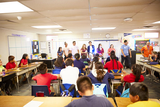 High School student leaders teach younger students lessons that they’ve learned. Students are given real life examples and recommendations on how they can apply what they’re learning in school, at home, and in their communities.